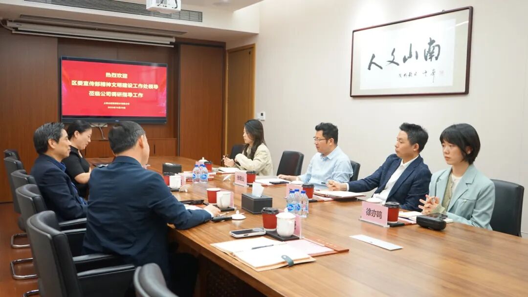 10月30日,浦东新区区委宣传部精神文明建设工作处处长张晓山,副处长沈云一行莅临公司调研指导文明单位创建工作。市党代表、公司总经理徐敏生,党总支书记、常务副总经理顾小双等陪同调研。